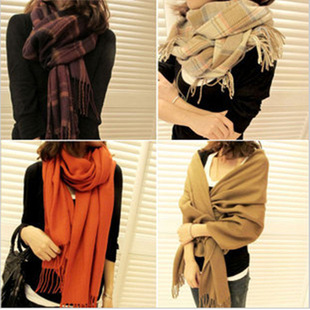 - 包邮【中国好配饰】秋冬格子款流苏拼色披肩围巾 仿羊绒围巾批发