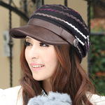 - 韩国时尚新款皮带针织帽 秋冬季时尚女士条纹鸭舌帽帽子批发