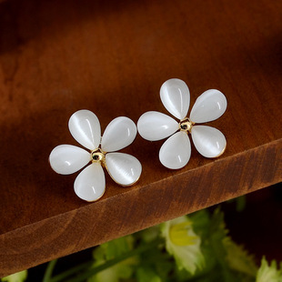 - 【中国好饰品】E393韩国可爱时尚纯白清新樱花韩版百搭猫眼石耳钉
