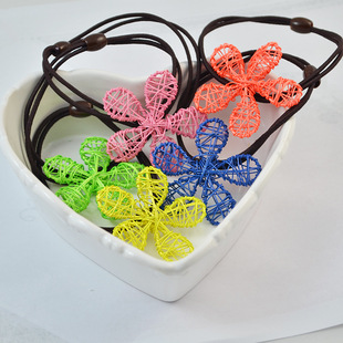 - 手工缠绕荧光色花朵发圈发绳韩版发饰饰品批发头饰